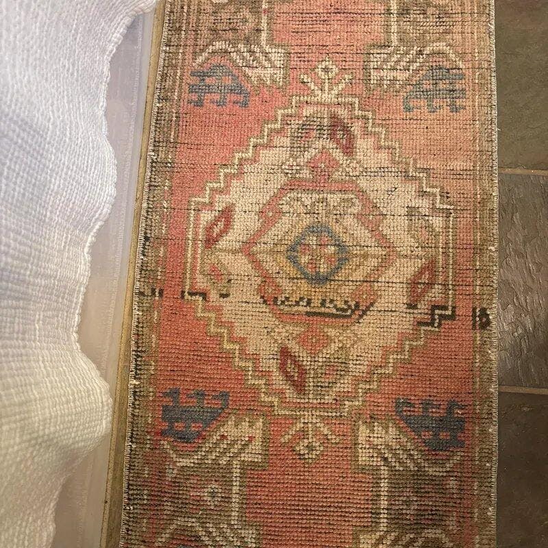 Hand Knotted Peach Vintage Rug Oushak Rug