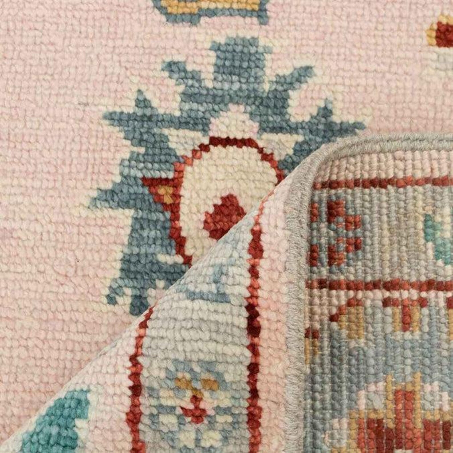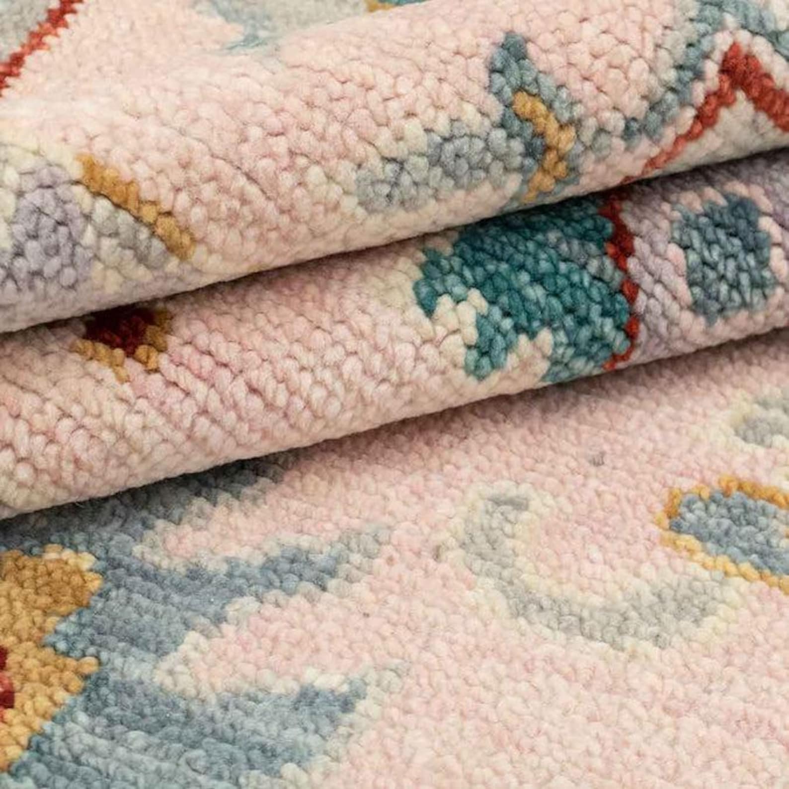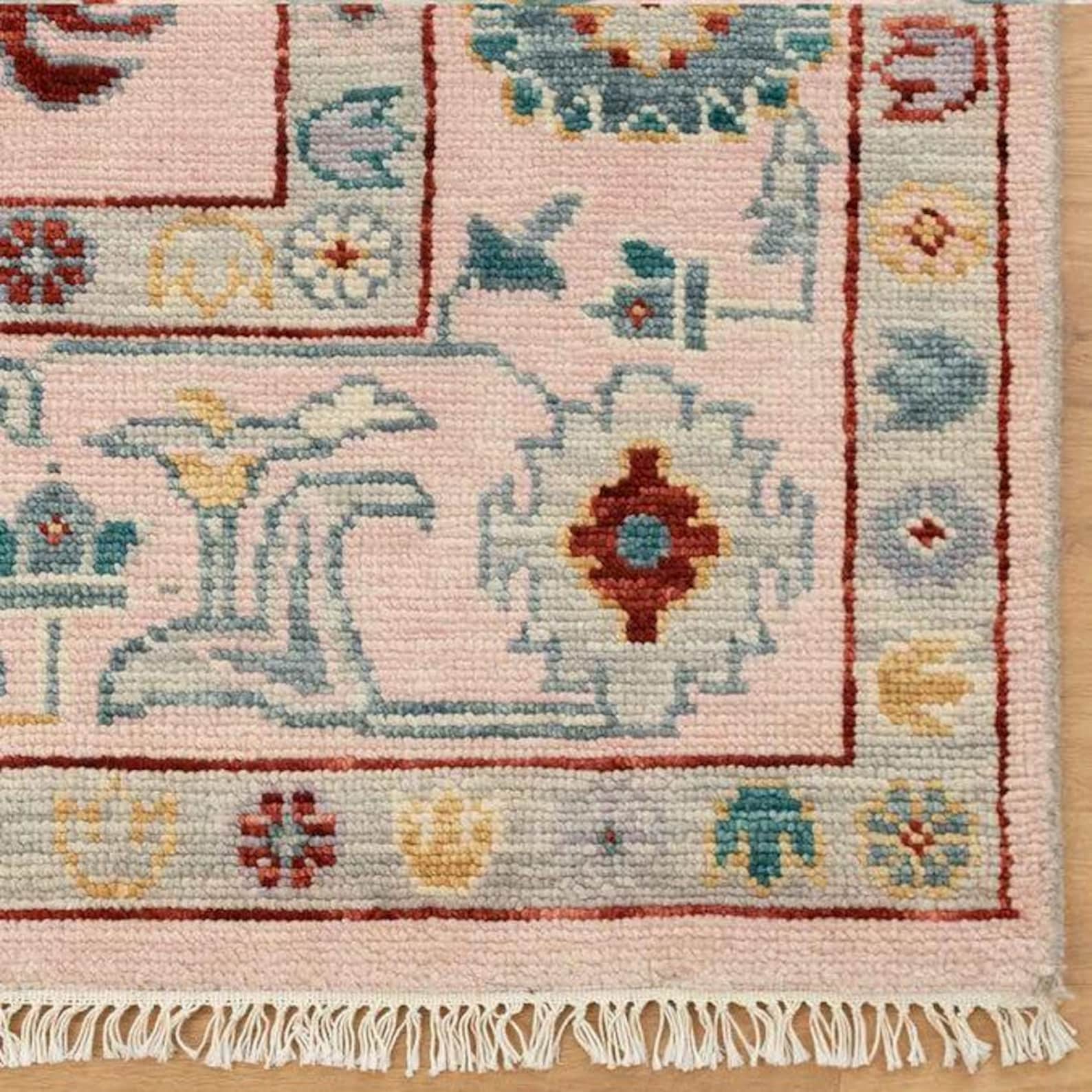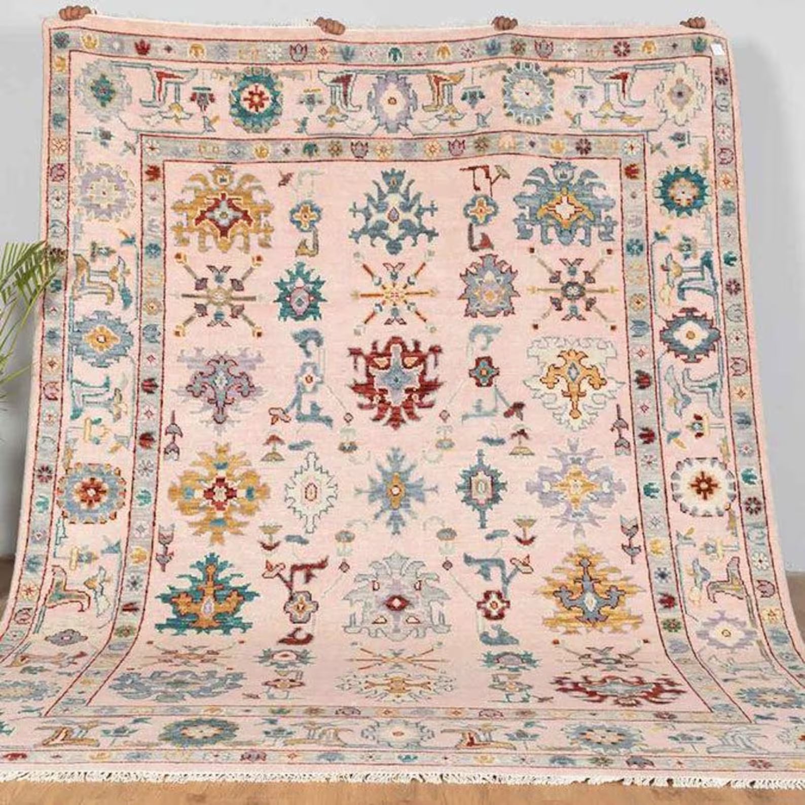 Handmade Peach Wool Rug – Traditional Floral Oushak Design with Beige, Green & Gold Accents – Hand Knotted Oriental Area Carpet