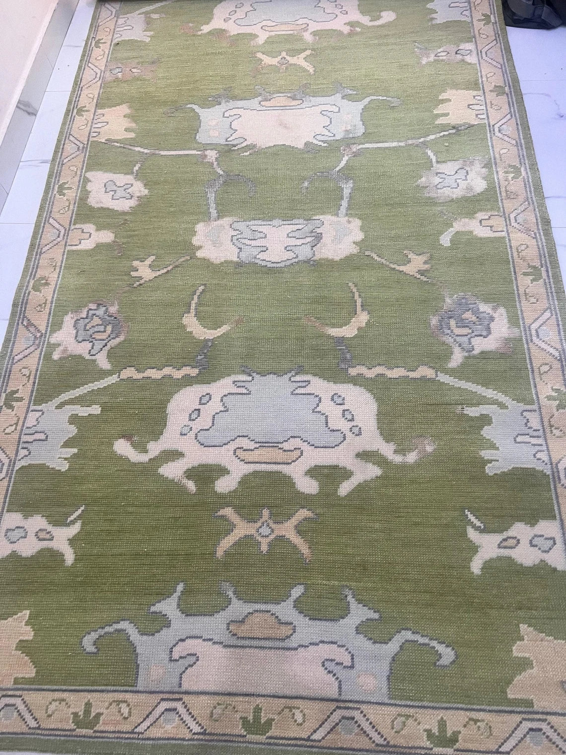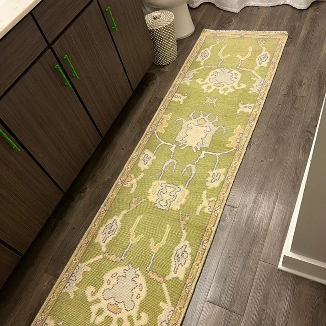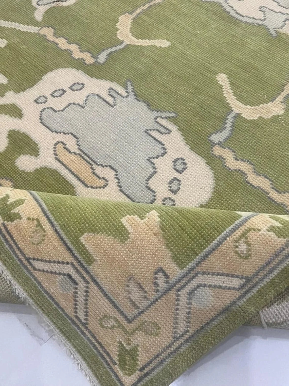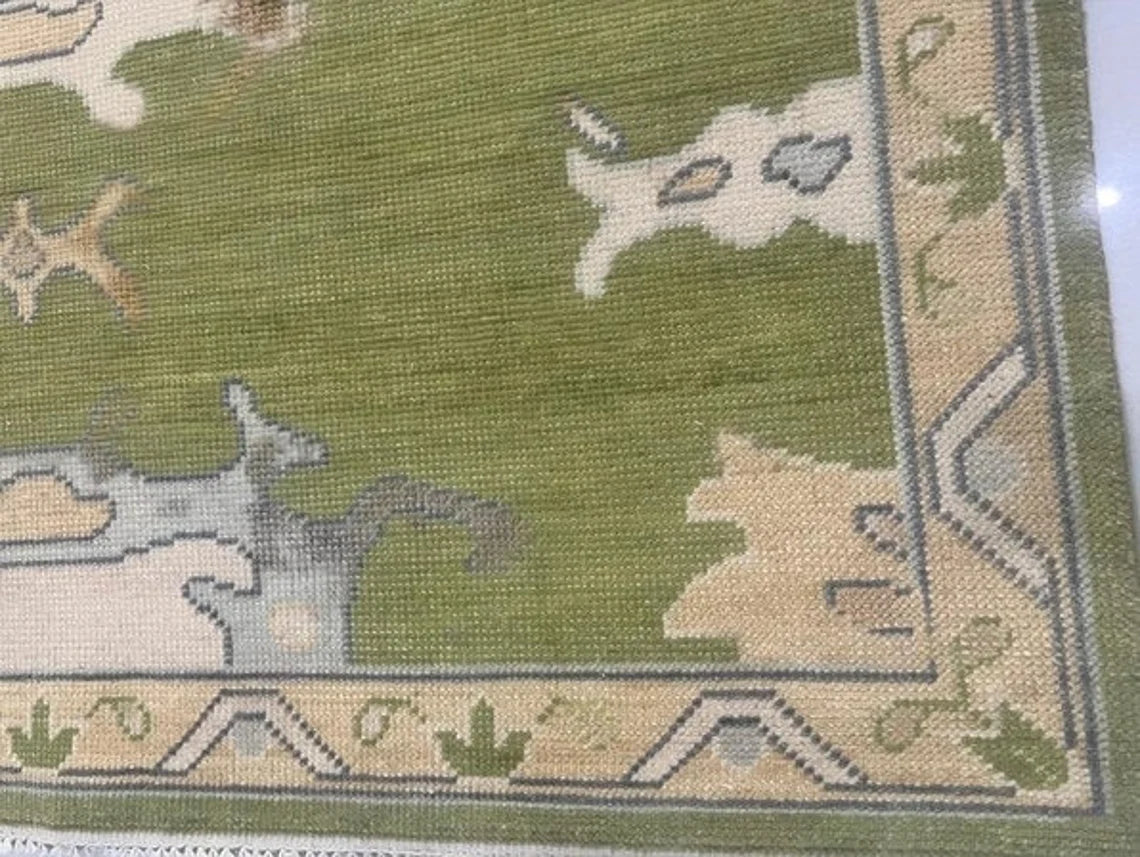 Low Pile Green Accent Oushak Runner Boho Rug Hand Woolen Oushak Rug Living Room,Dining Room,Office,Bedroom,Hand Knotted Wool Area Rug,9X12,