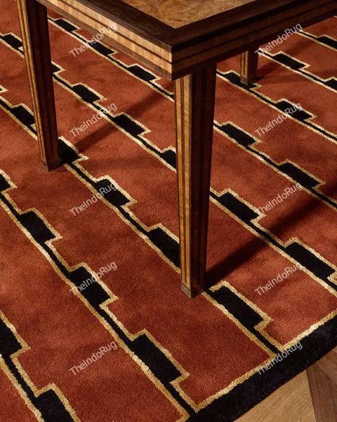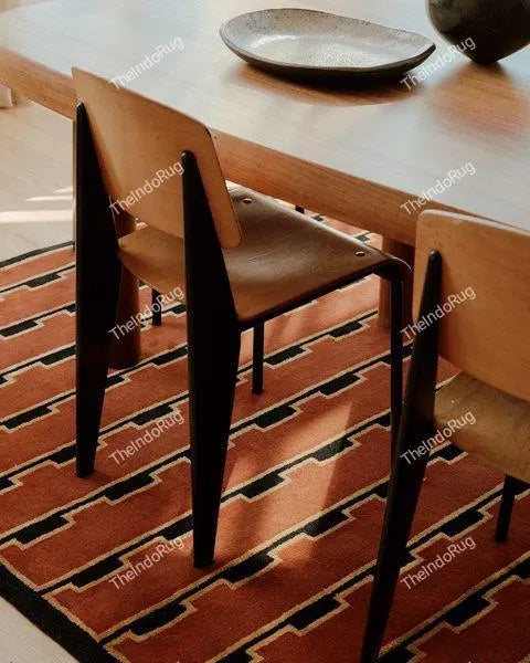 Low Pile Handwoven Wool Flatweave Rug – Terracotta with Black Geometric Design – Modern Southwest Aesthetic, 5x8 ft