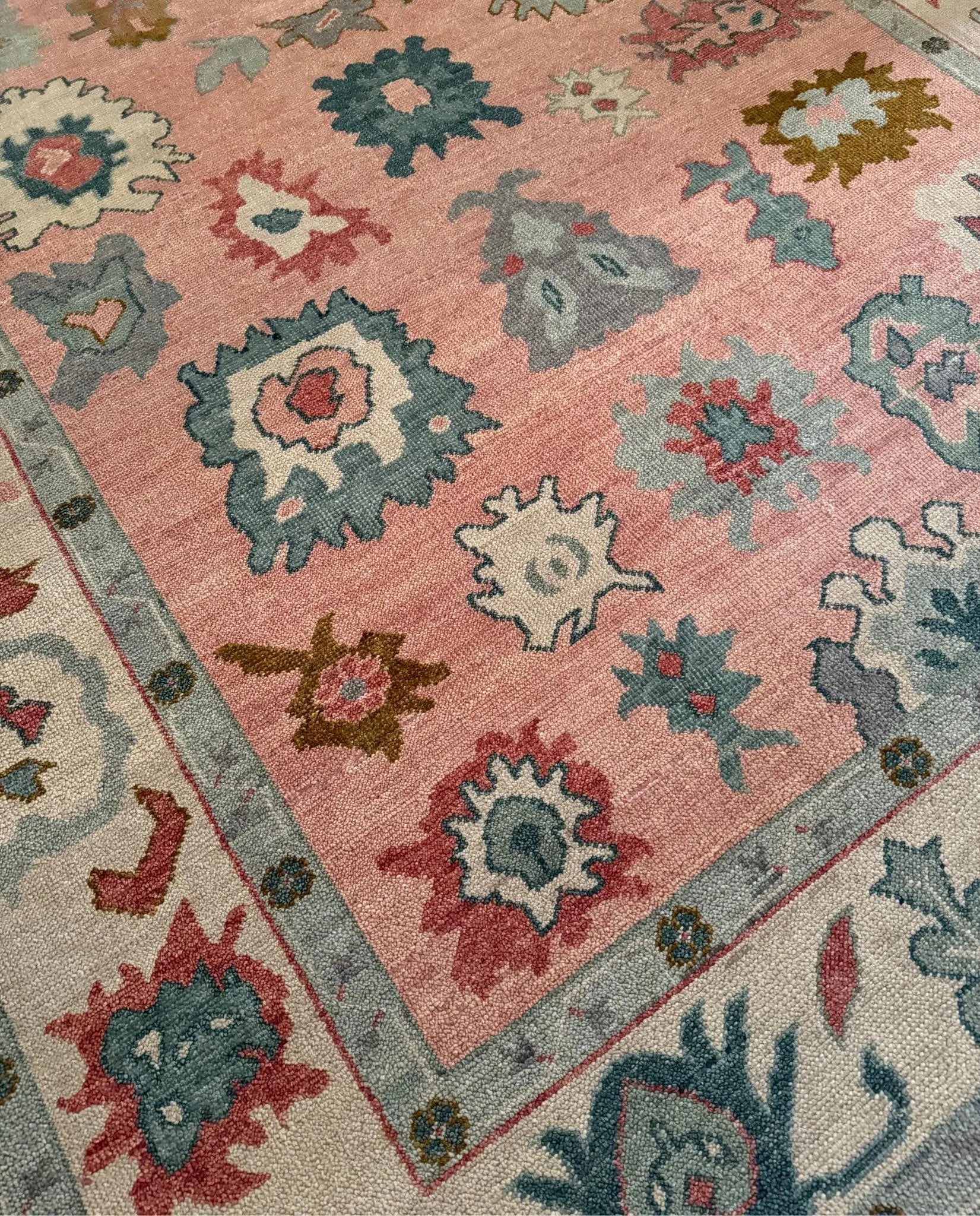 Peach Soft New Zealand Wool Area Rug | Traditional Turkish Design | Carpet Craft Decor | Hand Knotted Carpet